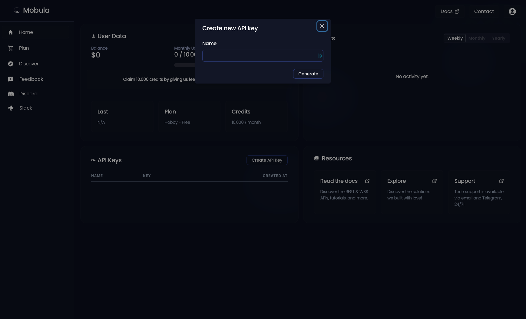 The initial step is acquiring a Mobula Web3 API key on your dashboard: