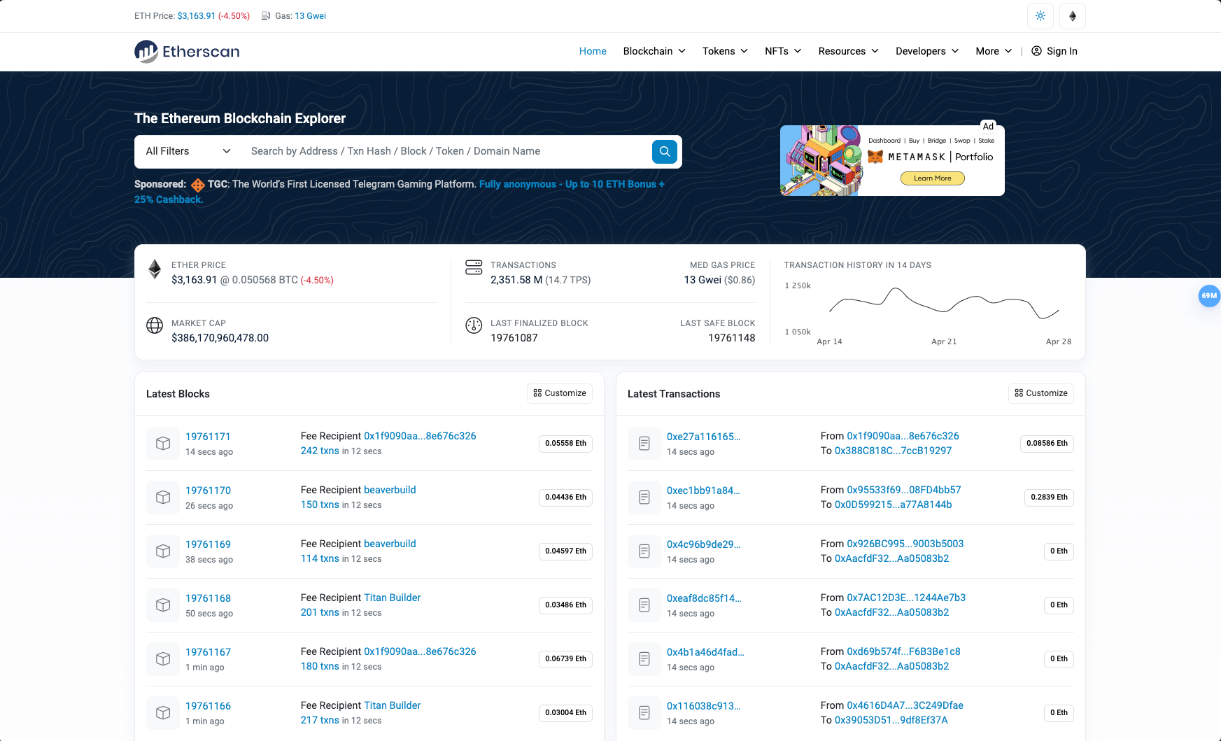 - In-depth Blockchain Analytics: EtherScan offers extensive tools for analyzing the Ethereum blockchain, including visualizations of transactions and smart contracts, making it invaluable for developers seeking to understand blockchain dynamics deeply.