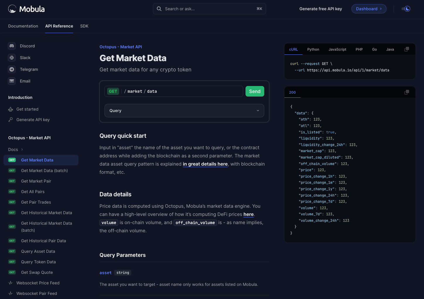 - Overview and Key Features: Mobula API stands as a premier choice for developers seeking comprehensive multi-chain data aggregation. Designed with a focus on real-time data accuracy and ease of integration, Mobula API provides access to a wide range of information across multiple blockchains. Its features include real-time price feeds, liquidity pool data, and transaction tracking, making it a versatile tool for DeFi applications, market analysis, and portfolio management tools.